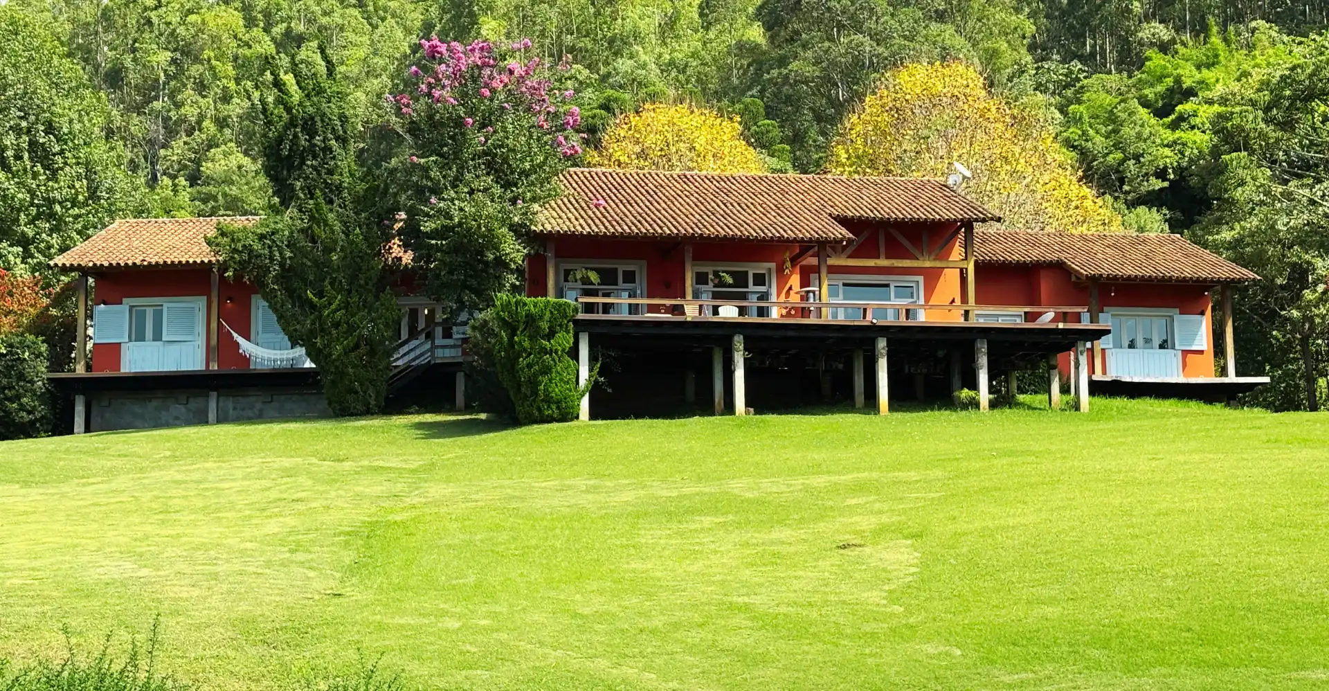 A Casa da Mantiqueira tem uma vista incrível e está localizada dentro de um sítio com 230 mil m², com matas e córregos, cercada por um amplo gramado de mais de 9.000 m², em meio à mata nativa.